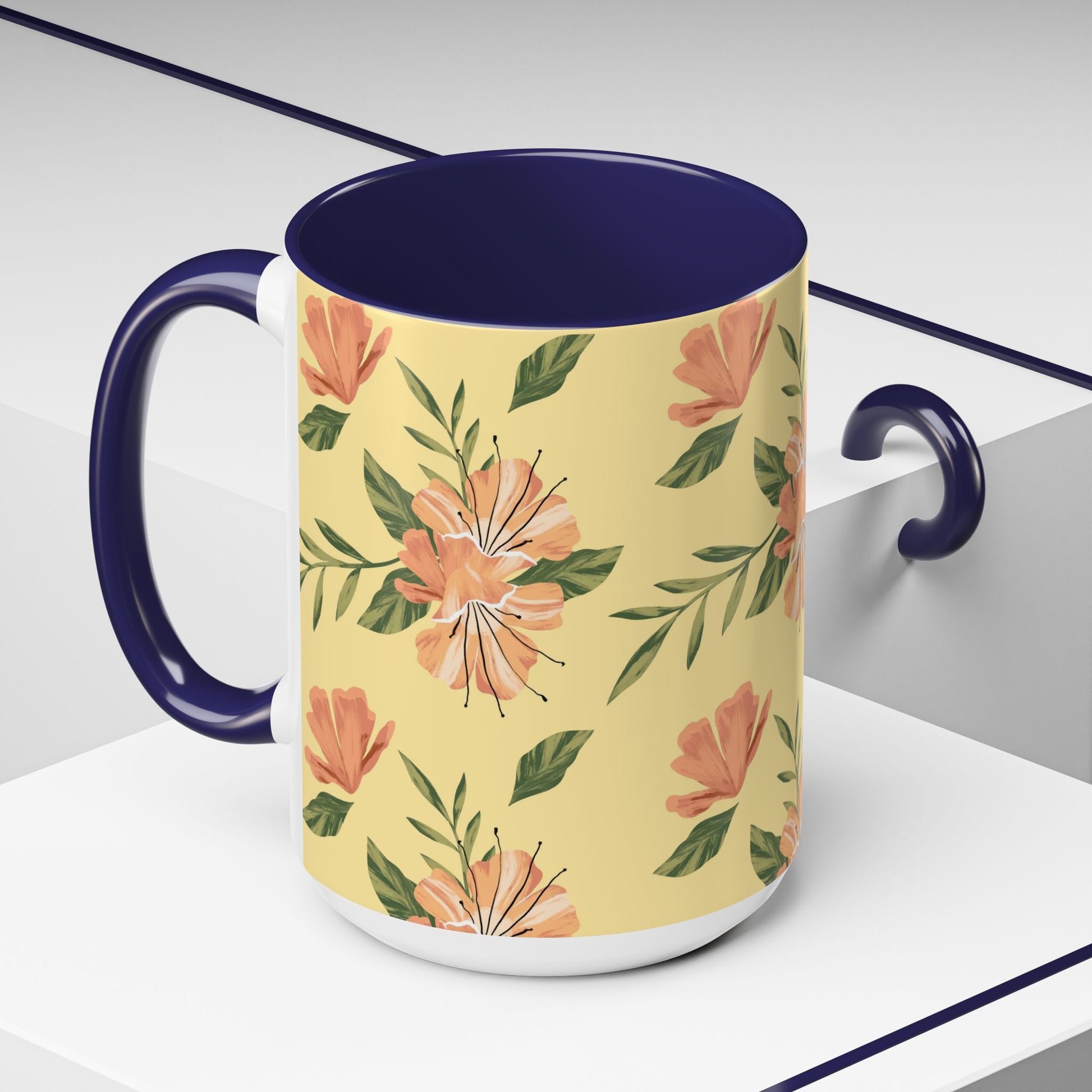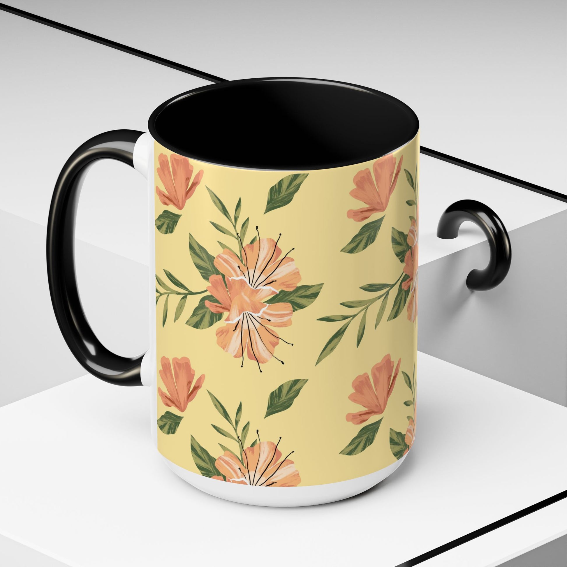 Meet your next favorite morning companion, the accented ceramic mug. This mug brings the perfect blend of style and functionality to elevate your coffee or tea ritual. Available in two generous sizes, 11oz (0.33 l) and 15oz (0.44 l), this mug offers ample space for your favorite brew. Made with white ceramic and sporting a sleek glossy finish with eye-catching contrast, this mug is a bliss both to use and to look at. The ergonomic C-shaped handle provides a comfortable grip, while the lead and BPA-free construction guarantee peace of mind with every sip.